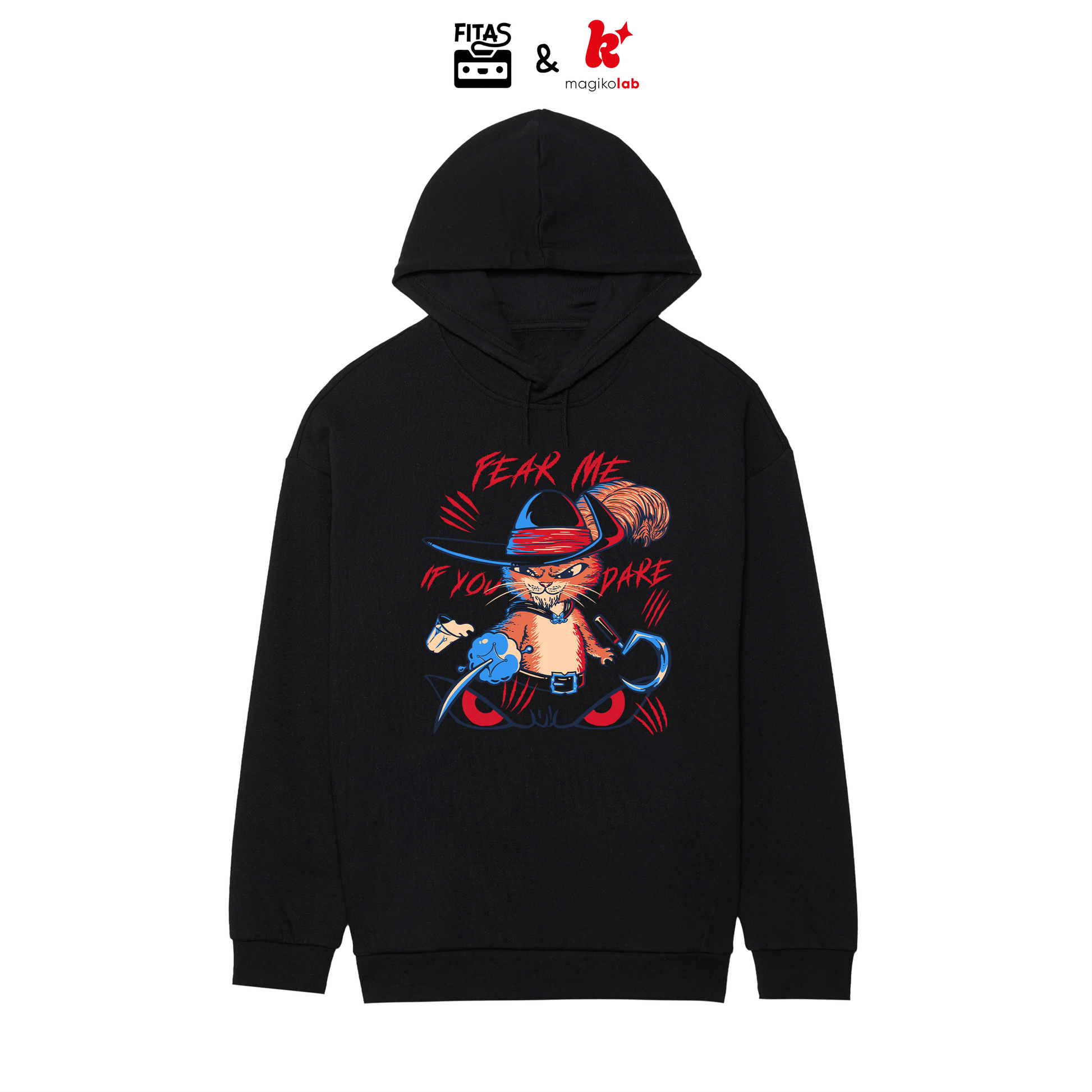 Indossa questa felpa e fai sentire il tuo sguardo da duro, proprio come il Gatto con gli Stivali! Con il suo iconico "Fear me if you dare", è perfetta per chi ha il coraggio di sfidare ogni avventura con stile e un po' di follia. Sia che tu stia camminando sulla strada o affrontando il mondo, questa felpa ti dà la grinta di un vero eroe (o antieroe).