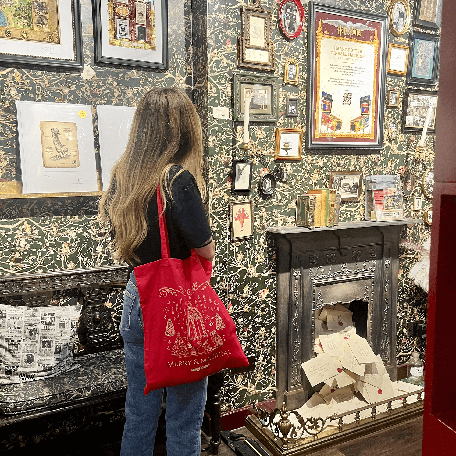 Una shopper pensata per chi vive il Natale come un incantesimo, tra biscotti, neve e magie nascoste tra le pagine di un libro.
