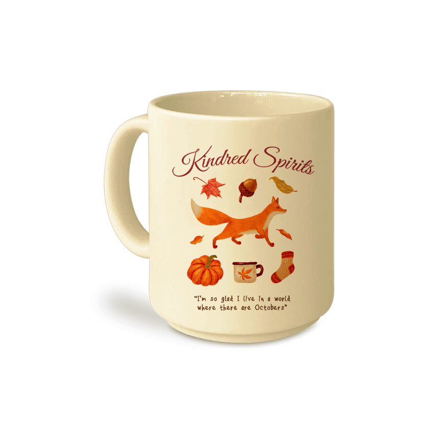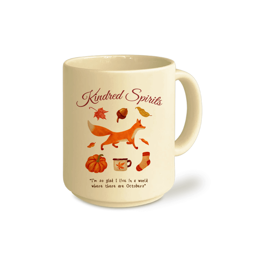 Una tazza che celebra l’amicizia e la poesia dell’autunno, con la frase che ha fatto sognare generazioni: “Sono così felice di vivere in un mondo dove esistono gli Ottobri” 🍂☕🦊