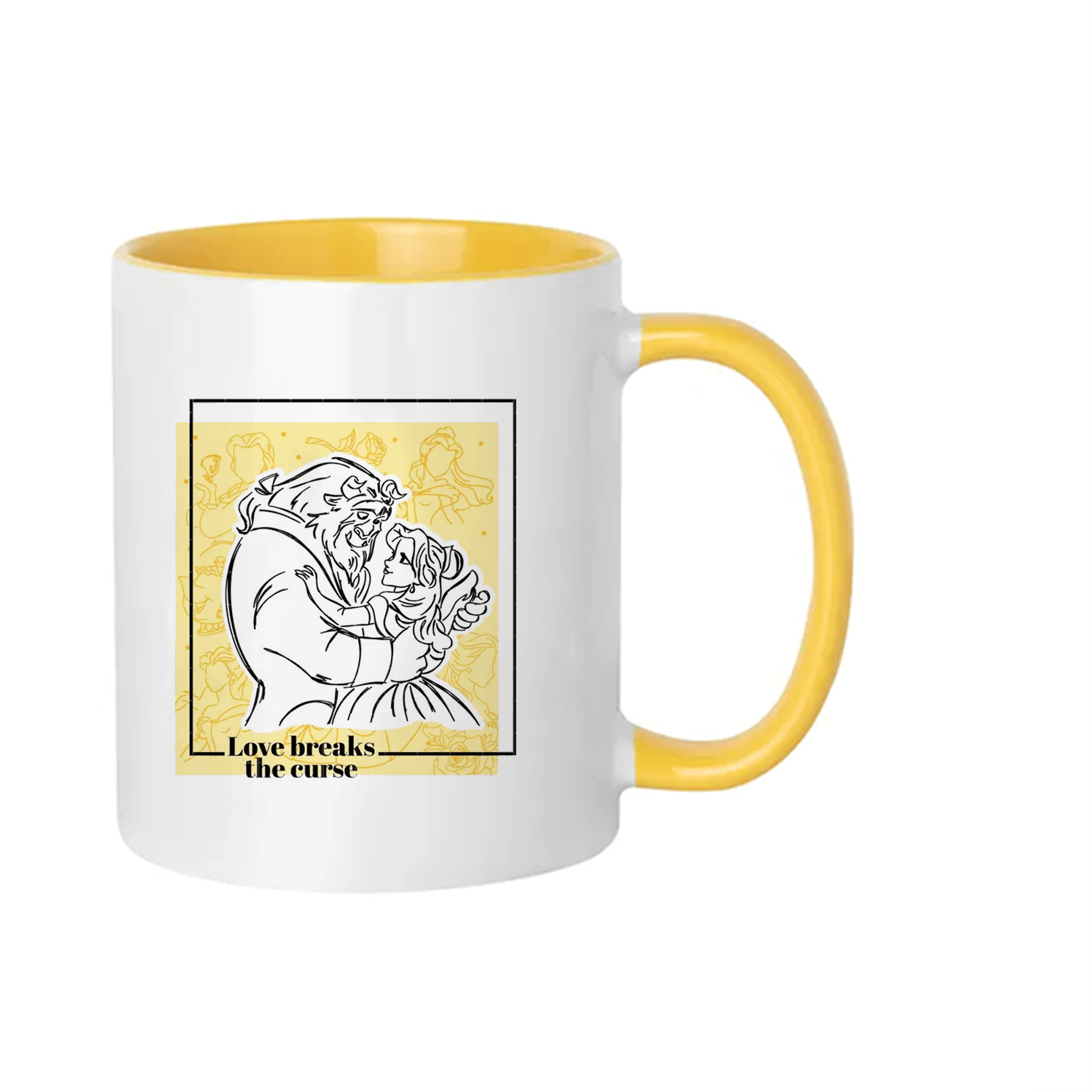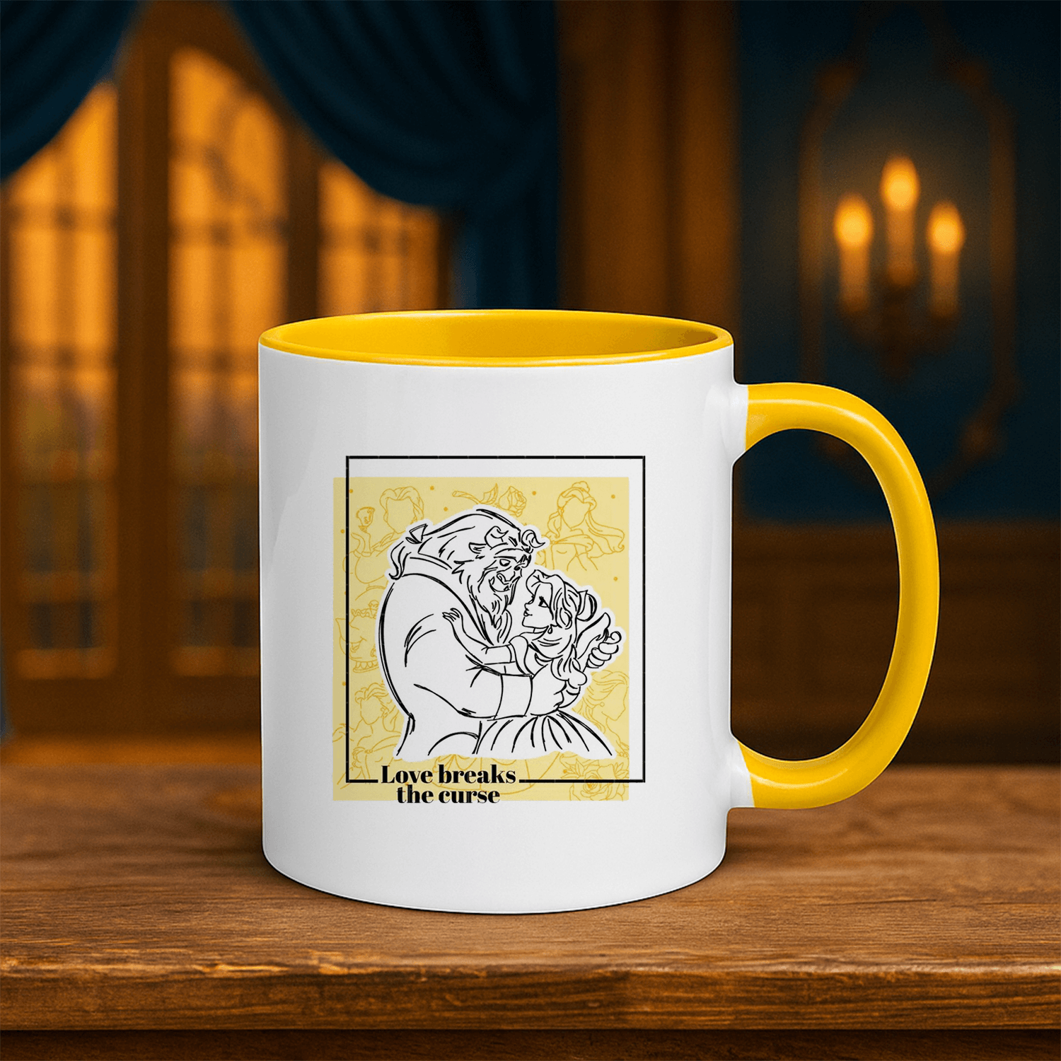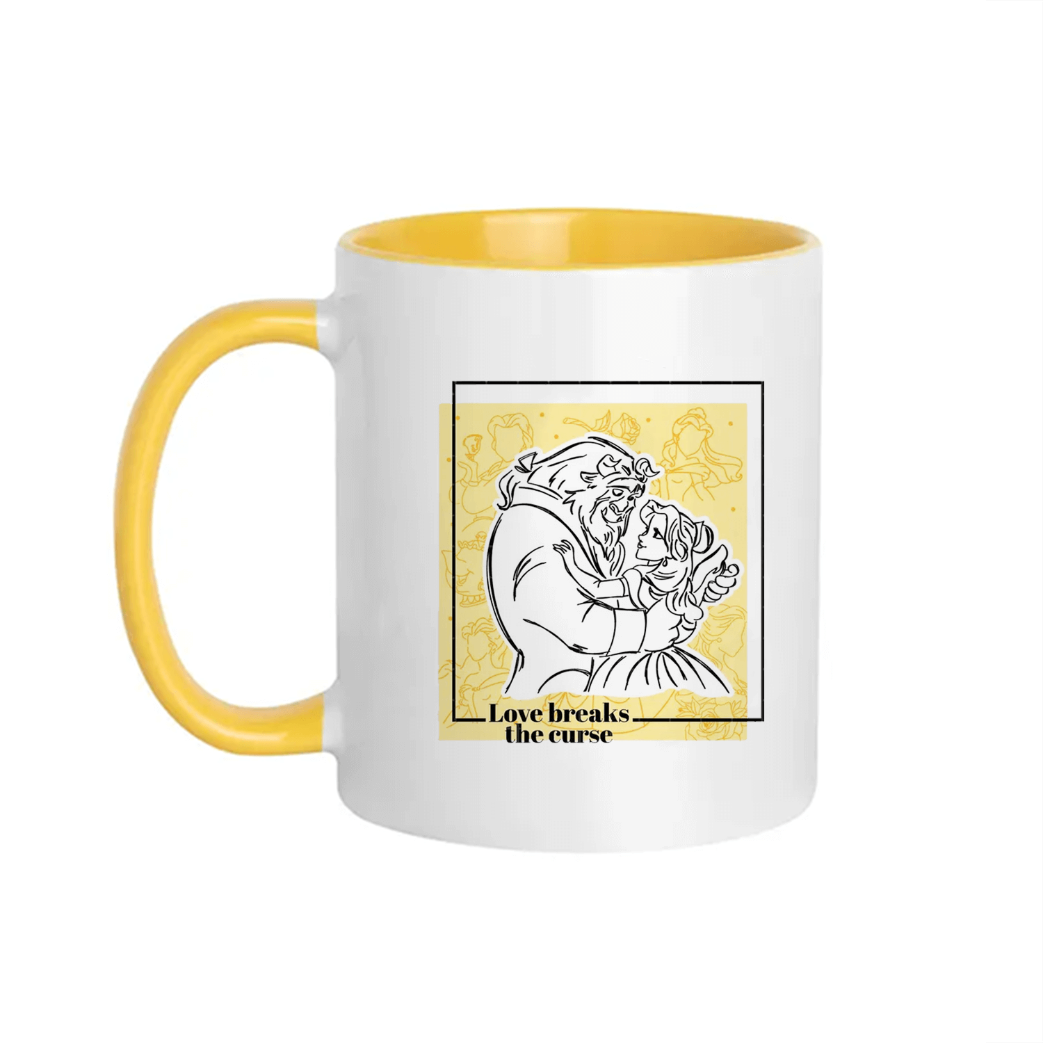 Con bordi color sole e l'illustrazione di Belle e Adam, questa tazza ti ricorda che anche nei giorni no, puoi scegliere la magia.